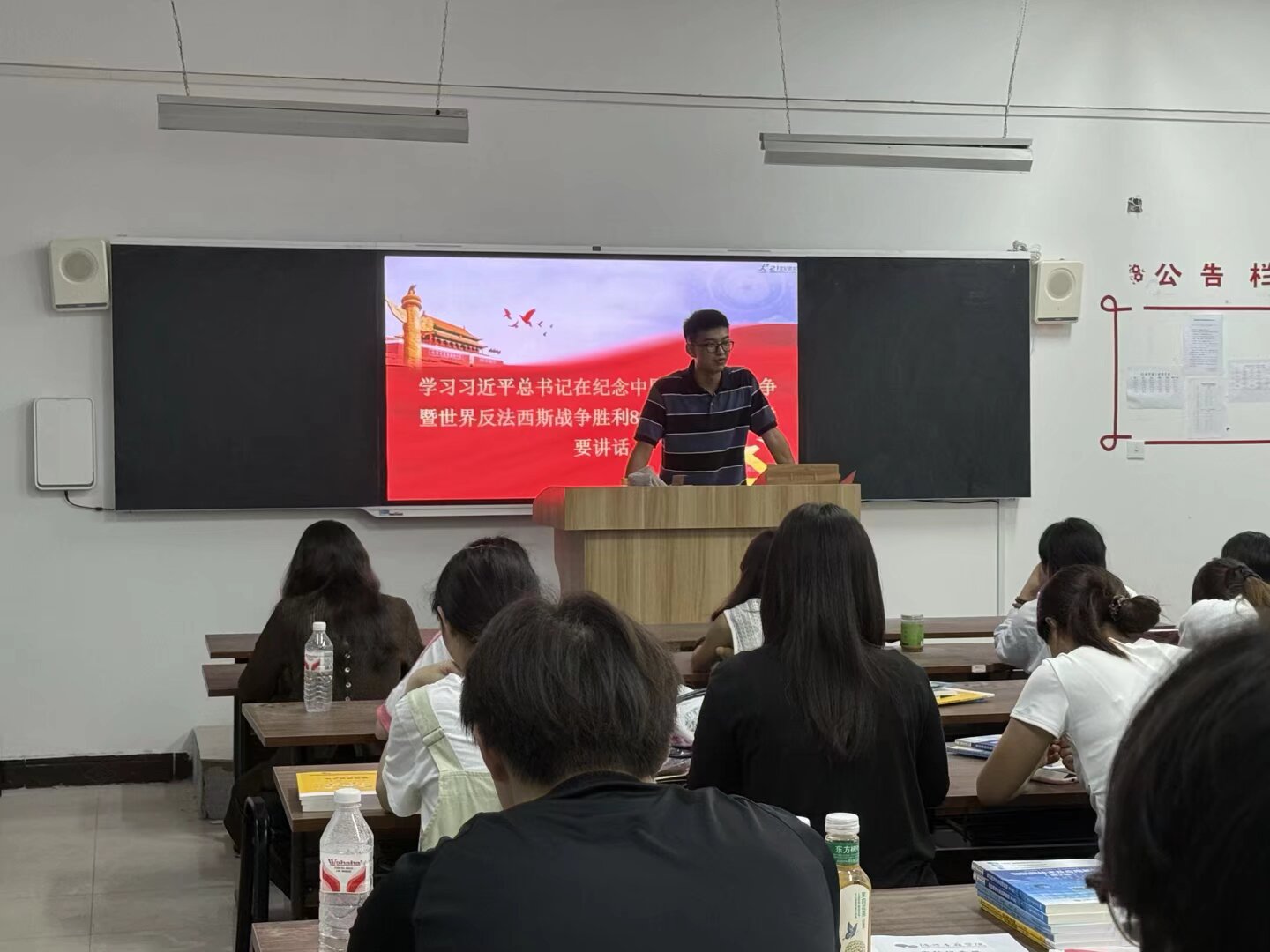 为弘扬爱国主义精神,加强学生思想政治教育,9月8日,随州职业技术学院香菇学院组织各班级统一召开了以“纪念世界反法西斯战争胜利80周年”为主题的爱国主义教育班会。