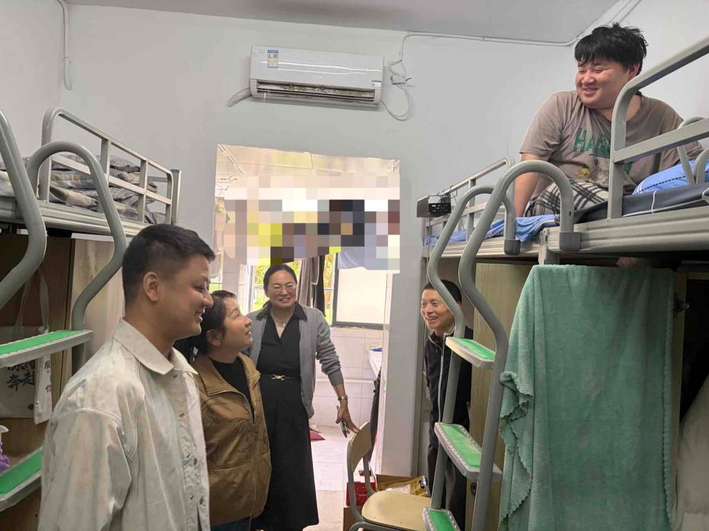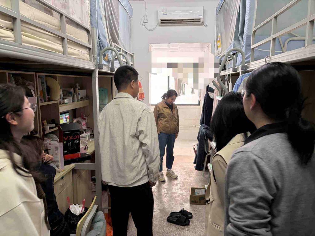 随后,院领导走访多间宿舍,重点检查用电安全、消防设施及卫生情况,并与学生交流。王琳院长对整洁的宿舍表示肯定,叮嘱学生继续保持良好习惯。