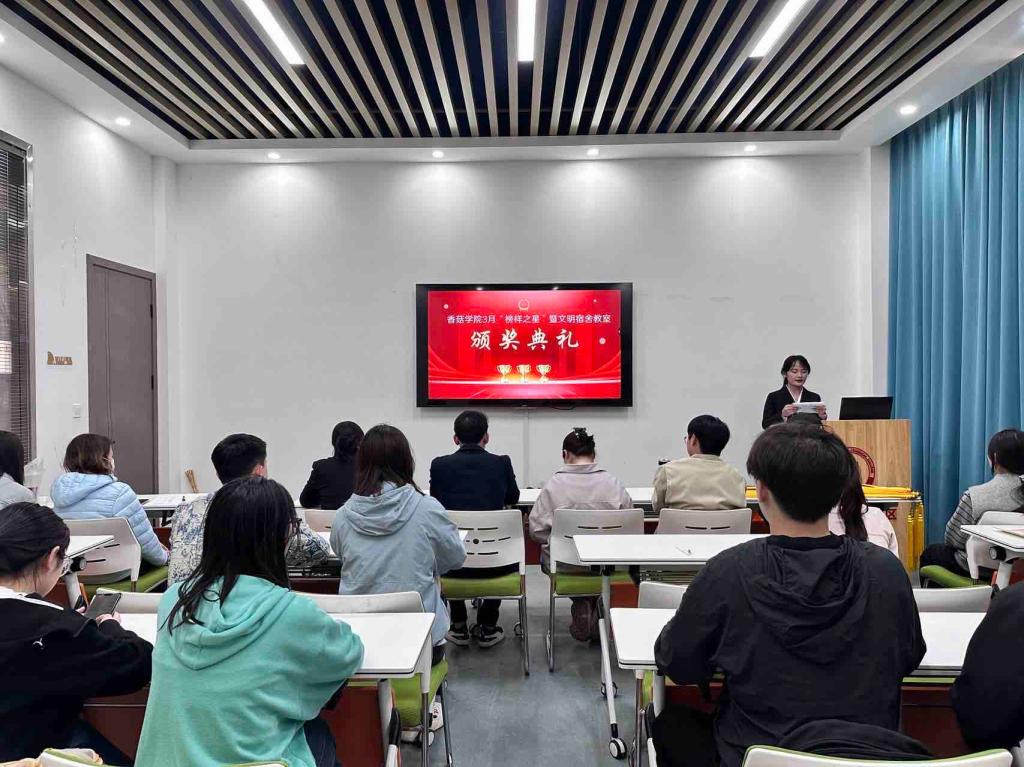 4月16日我院依托一站式学生社区,在党团工作站举办3月“榜样之星”暨文明宿舍班级及“挑战杯”颁奖典礼。学院党总支副书记吴冉冉出席并致辞。