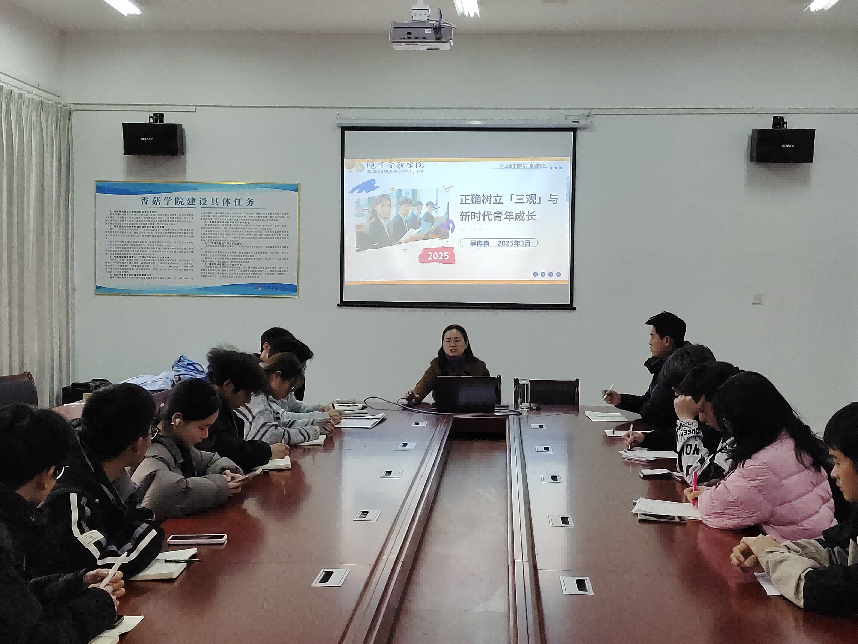 2025年3月23日,香菇学院第三期“青年马克思主义者培养工程”(以下简称“青马工程”)培训班举行“正确树立三观与新时代青年成长”专题培训。本次培训聚焦新时代青年世界观、人生观、价值观塑造的核心命题,旨在引导学生骨干筑牢信仰之基、把稳思想之舵。学院党总支副书记吴冉冉主持培训并作专题讲授。