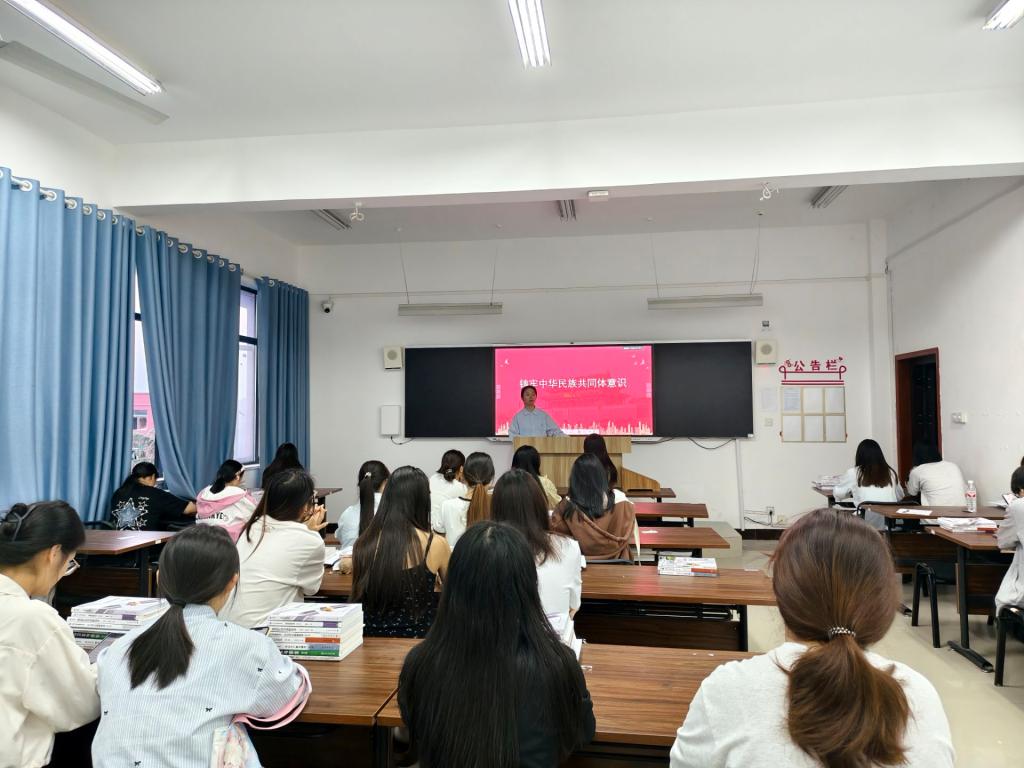 会上,辅导员围绕中华民族多元一体格局、民族团结进步等内容进行深入讲解,结合专业特色与生活实例,引导同学们深刻认识铸牢中华民族共同体意识的重大意义。同学们踊跃发言,分享了对民族交融、文化认同的理解与感悟。