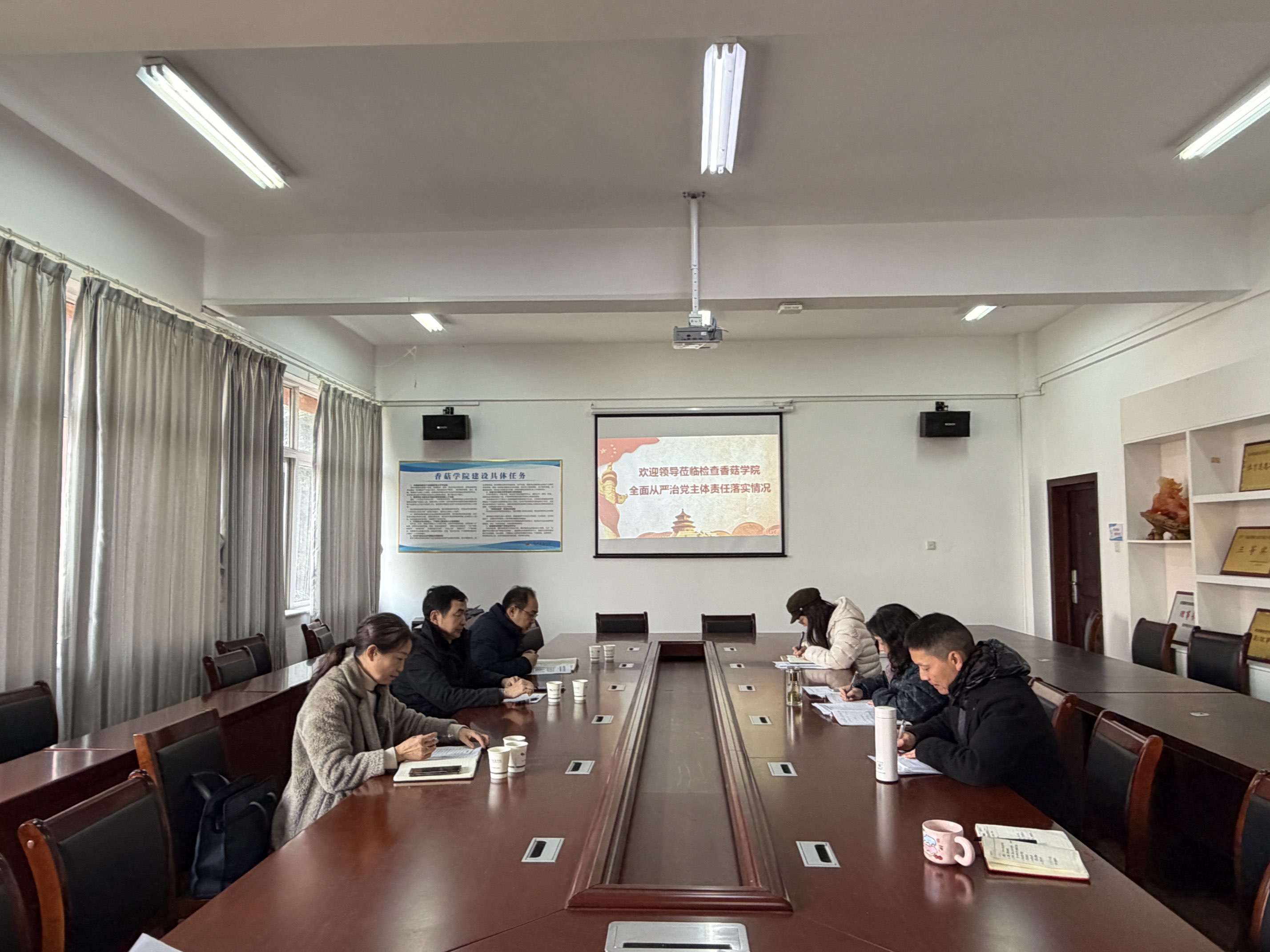 12月29日,学院党委书记李建伟带带队到香菇学院开展落实全面从严治党主体责任监督检查工作。香菇学院执行院长王琳代表学院党总支,从党风廉政建设主体责任和监督责任落实情况、思想文化及意识形态工作、廉政风险防控体系建设、“三重一大”决策制度落实等五个方面,详细汇报了2025年度全面从严治党工作的具体举措和成效。
