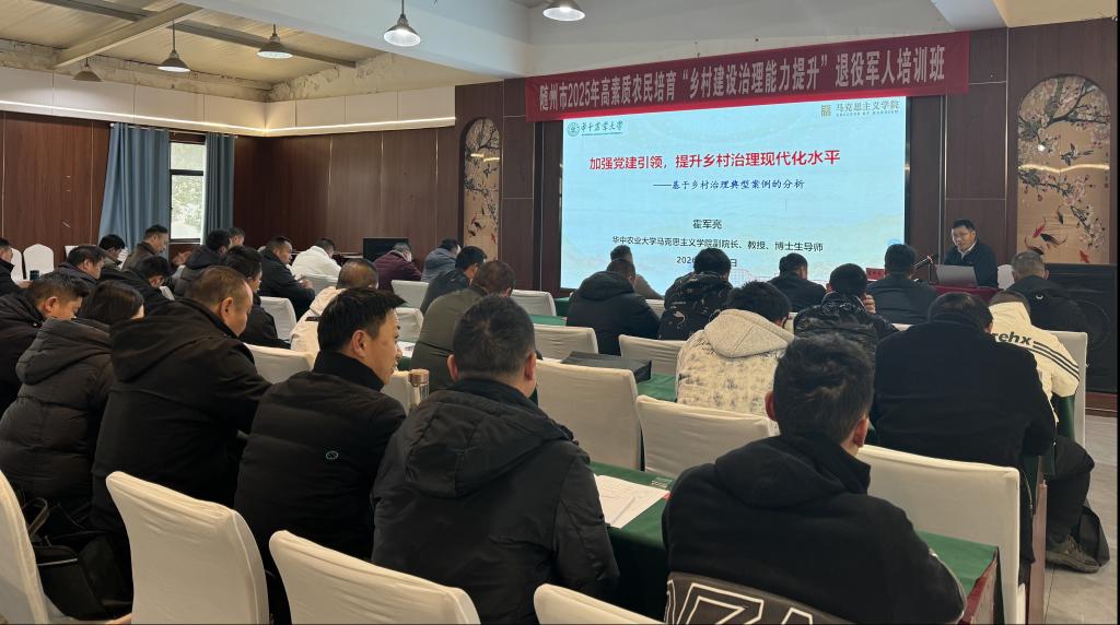 为进一步提升退役军人服务乡村振兴的理论素养与治理能力,随州市2025年高素质农民培育“乡村建设治理能力提升”退役军人培训班紧扣新时代农业农村发展需求,重点围绕乡村治理、政策金融及三农理论等五大核心课程展开深度教学,为参训学员进行了一场高密度的理论“充电”。