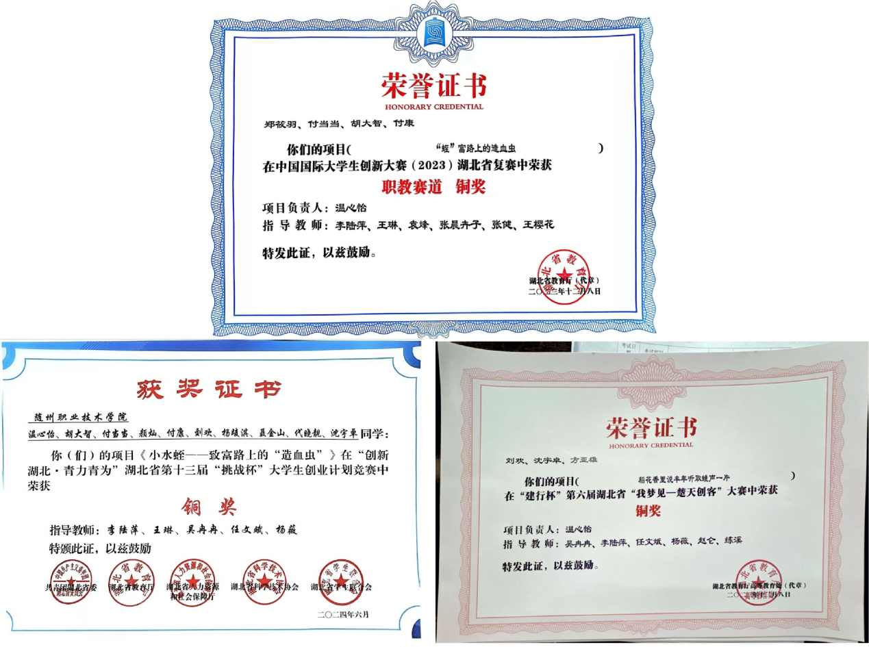 2023年获得随州市大学生创业大赛二等奖;